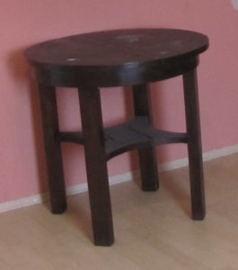 A nyaralóban lévő szobánkba készülgetnek az újabb bútordarabok. Egy régi kerek asztalt pakoltunk jobbra balra, egyik szobából a másikba amikor jött az ötlet, hogy éjjeliszekrényt készítek belőle 🙂Az asztalt kettévágtam és a lábából is levágtam. Az volt a cél, hogy az asztal közepén található kis pakolórész megmaradjon és onnantól számoltam a lábakat.
