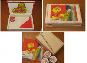 It is not very necessary to put one layer of glue before you apply the napkin on the decorated object. There are some cases where it is enough to put the glue on the napkin. This possibility can be used only on flat surfaces as a wooden box for example. On bulging shapes it is better to use the general: glue – napkin- glue – varnish steps.