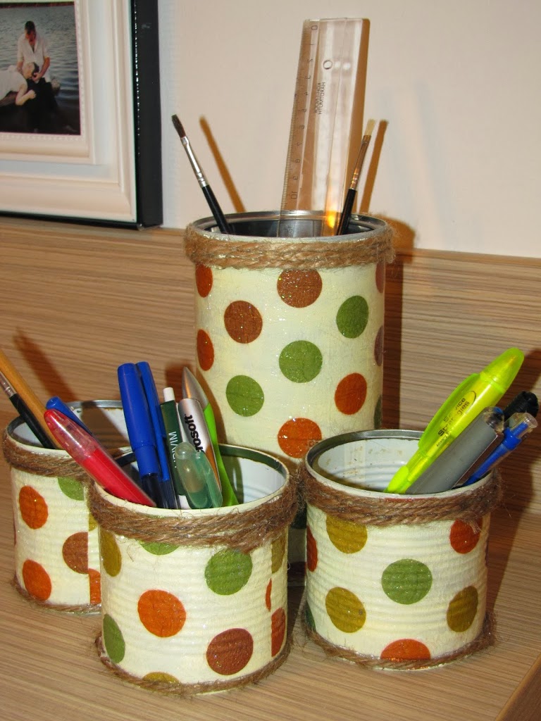 Az üvegek mellett a konzervdobozokat is gyűtöm mivel nagyon sokmindent lehet bennük tárolni és egy kis ráncfelvarrással az enterieur teljes értékű része lehet. Minden térben általában 3 színt használunk. Ennyi szerintem még egységességet mutat. Olvastam már olyat is hogy 5 szín, de ez a max. Nekem a kevesebb általában több és tapasztaltam már, hogy az 5 szín sok, pedig imádom a színeket. A konzervdobozok átalakítását én a 3. szín, azaz a kiegészítők színében ajánlanám. Igazán egységes lesz a tér ha van pár kiegészítőnk: tárolók, párnák váza ugyanabban a színben.