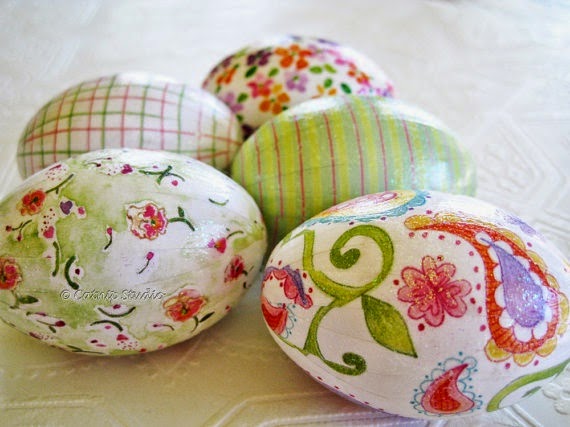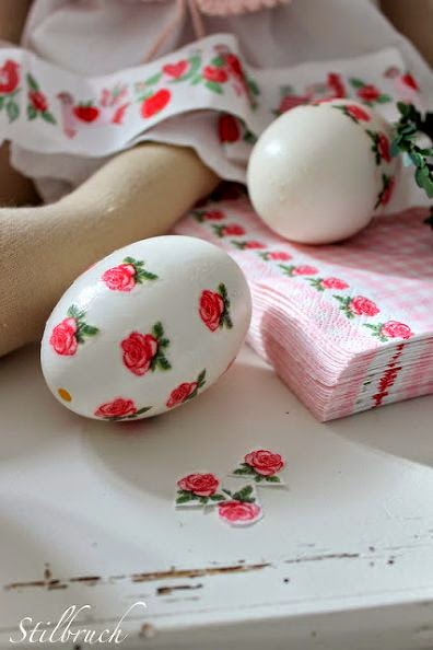 Here are some ideas what can be done with the napkins on the eggs.