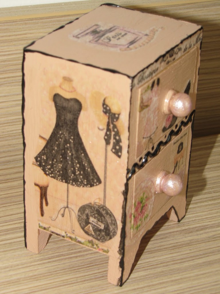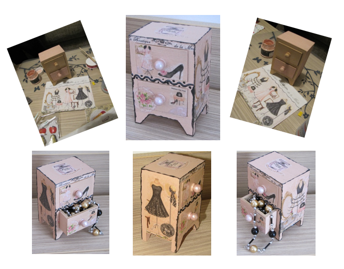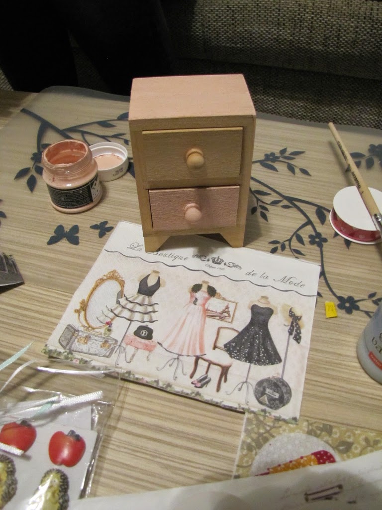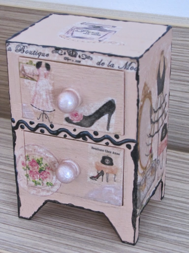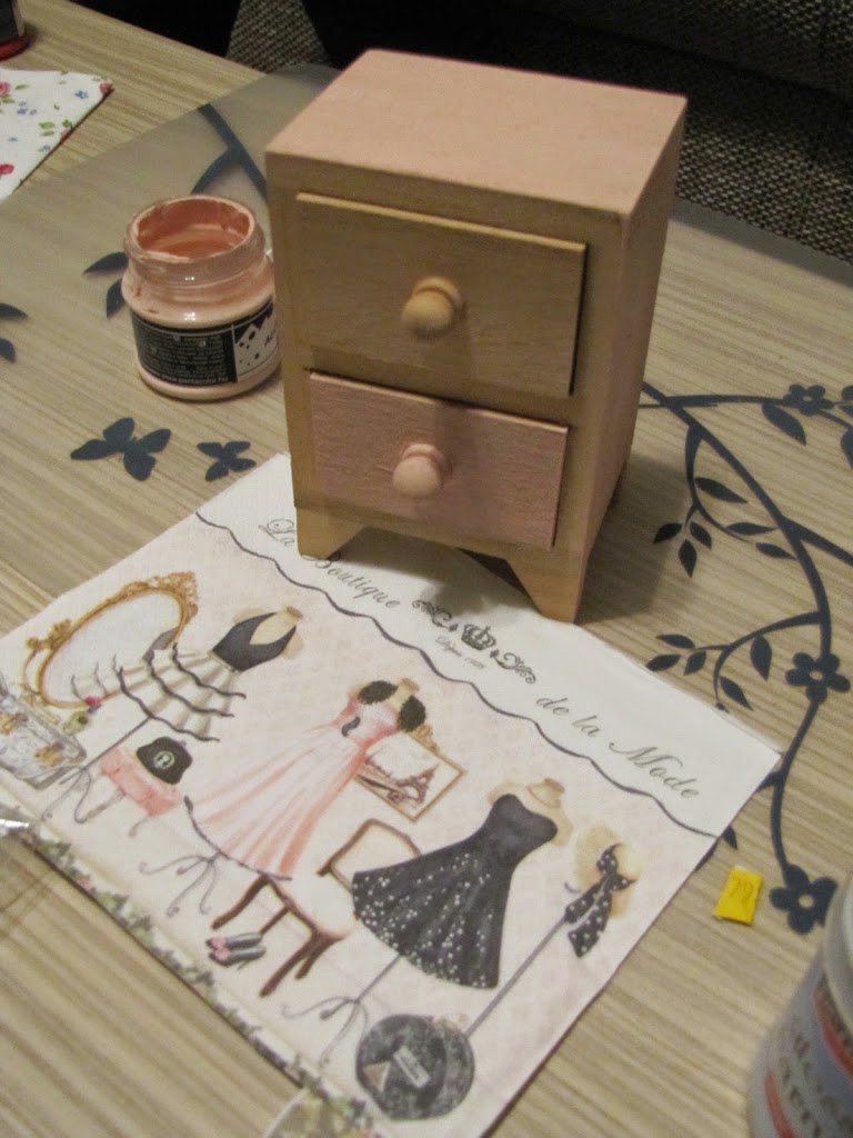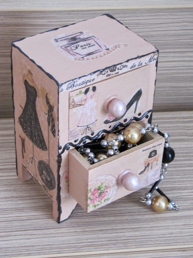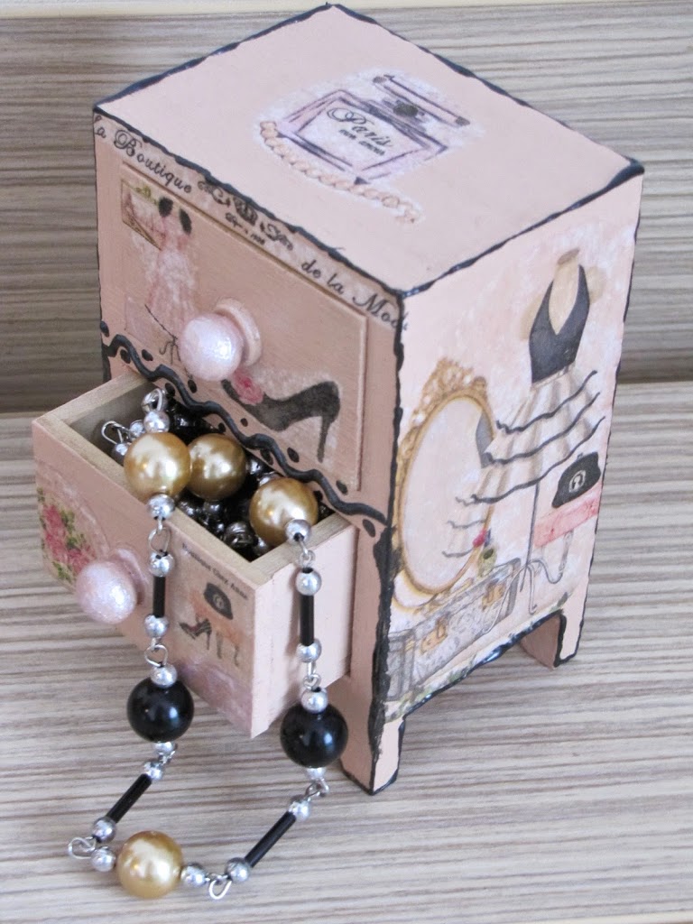 Ékszerdoboz fiókos változatban. Ezúttal együtt készítettük a tulajdonossal. Újabb mini tanfolyamot tartottam és újra bebizonyosodott, hogy a szalvétákkal bármit bárhogyan dekorálhatunk és személyessé tehetünk.